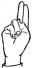 На ћирилици написано МАЈА БИБЕР састоји се из 9 слова [?]. Исписано ћириличном једноручном азбуком за глувонеме: